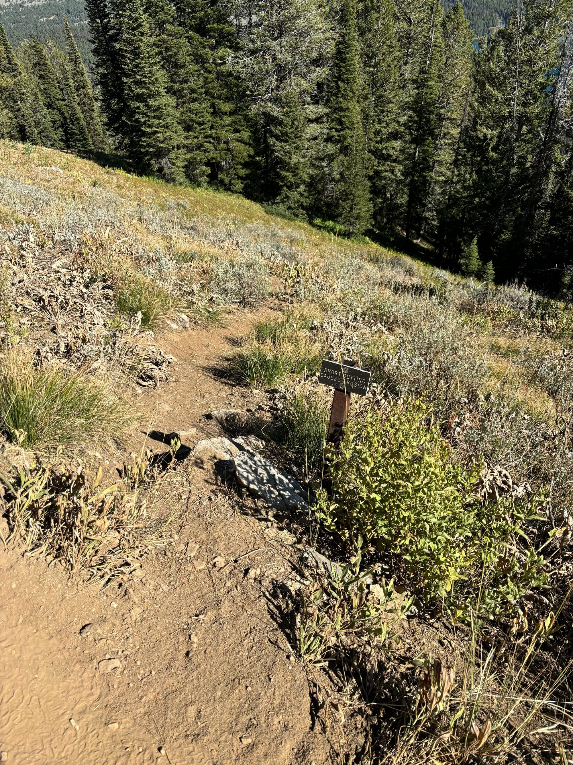The NPS posted two small signs at the bottom and top of the old climber’s trail. The sign at the top, the only side Michelino entered, merely states “Shortcutting causes erosion.” The small sign is placed next to an apparently well-traveled and maintained trail. On ascent, Michelino followed the less technical, official trail.