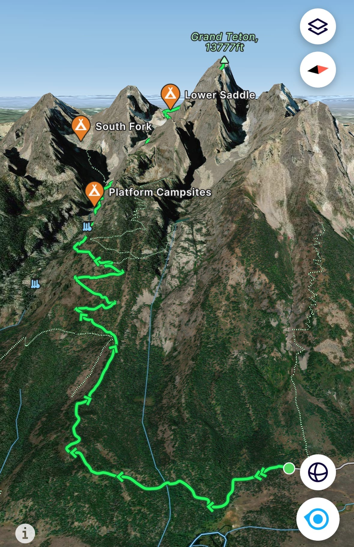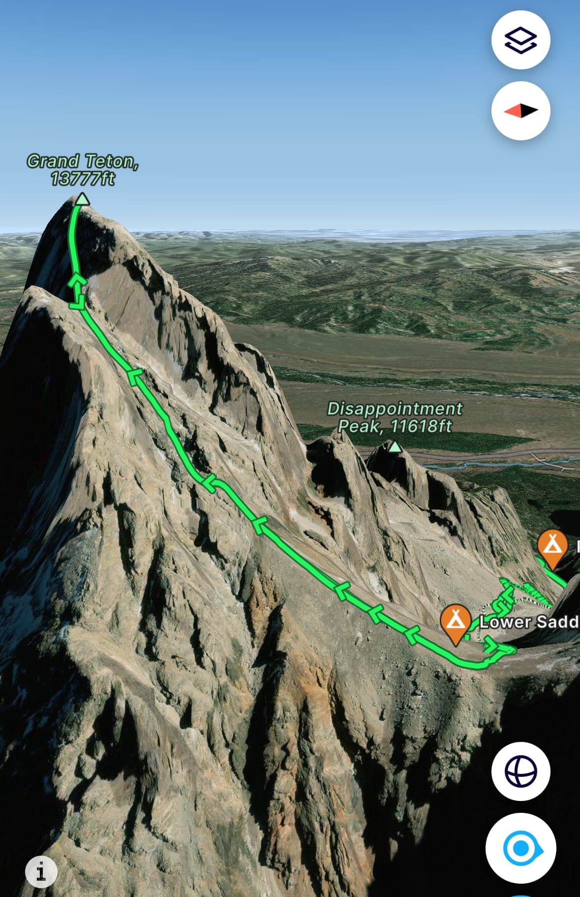 FatMap screenshot of the most common Grand Teton route