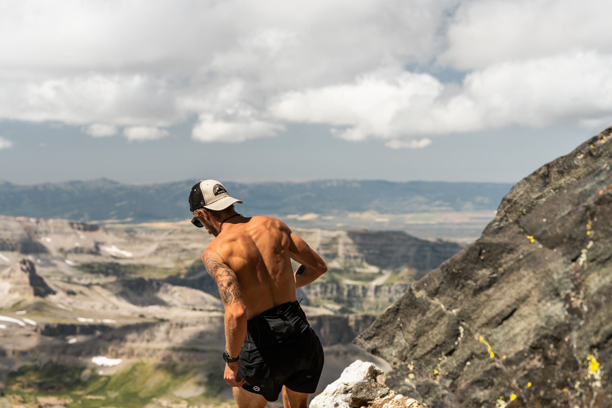 Rock conditions and hazards aside, an athlete pursuing a competitive FKT like Grand Teton needs to be in top condition for an attempt. Until this summer, Michelino balanced training with full-time shifts tending Grand Targhee’s Trap Bar. After ski season, he committed to full-time training. During his heaviest training periods, Michelino clocked over 30K vertical feet and 25 training hours weekly.