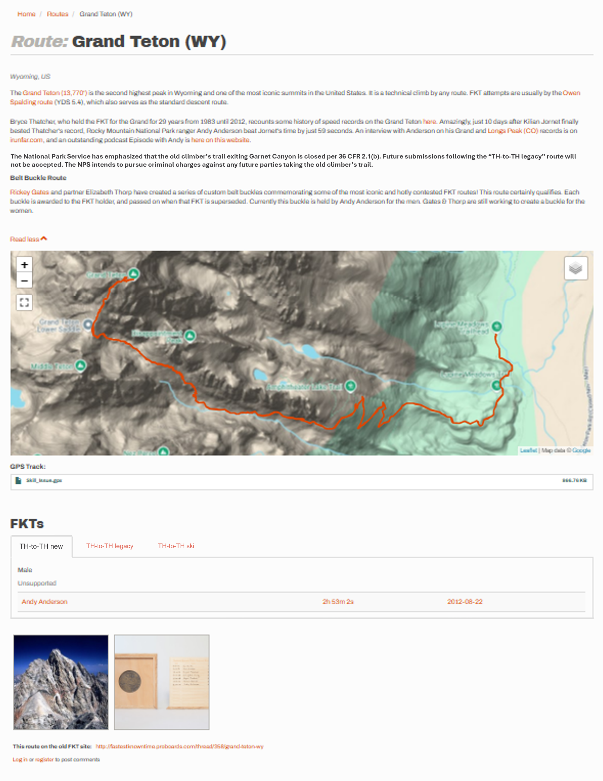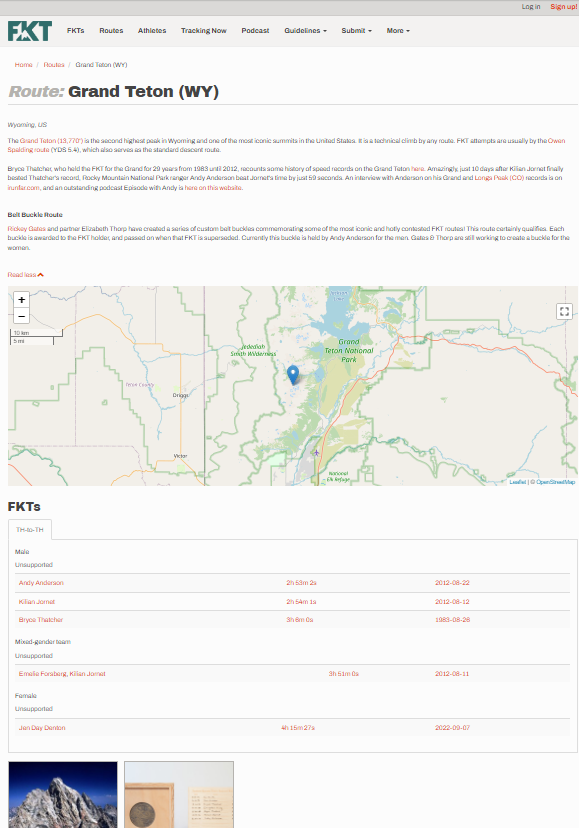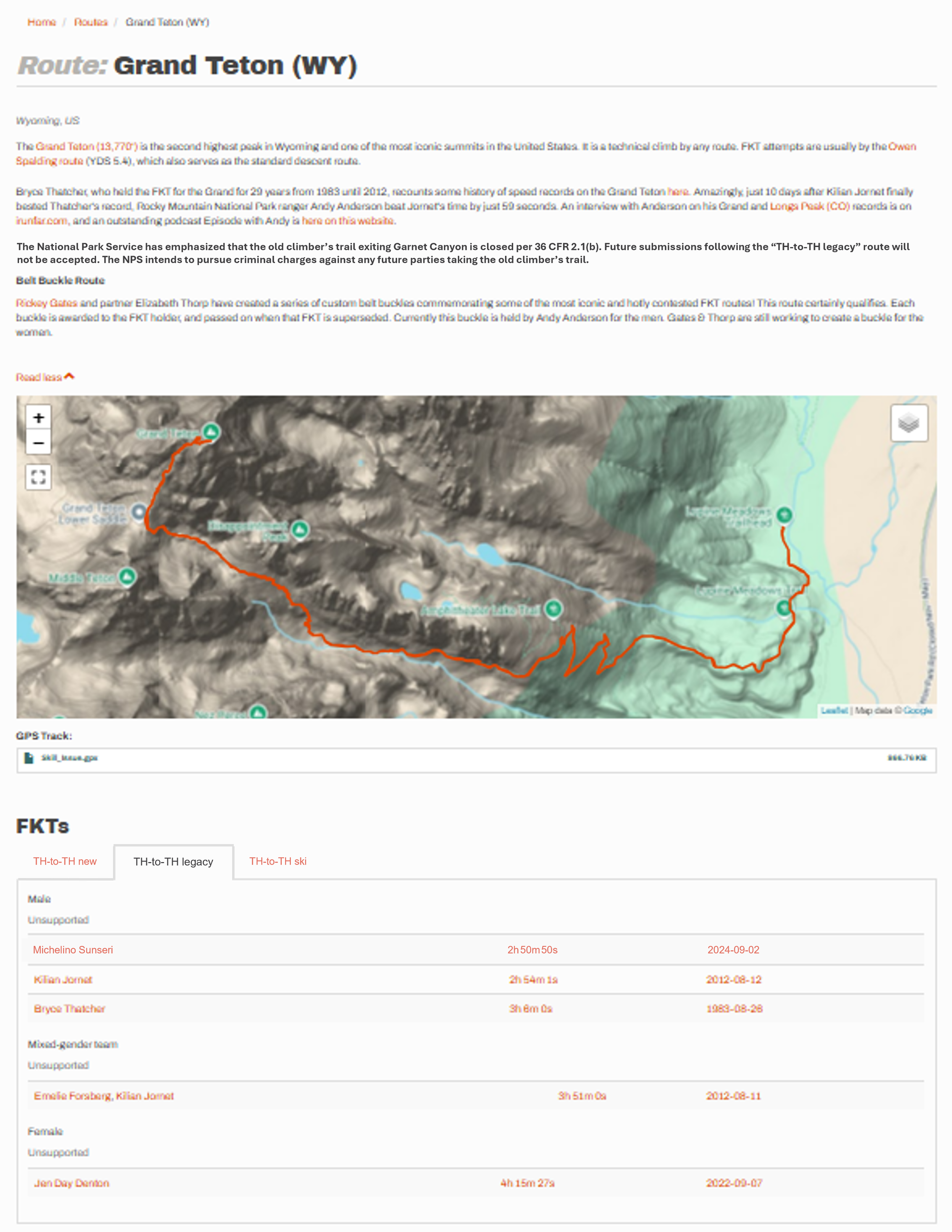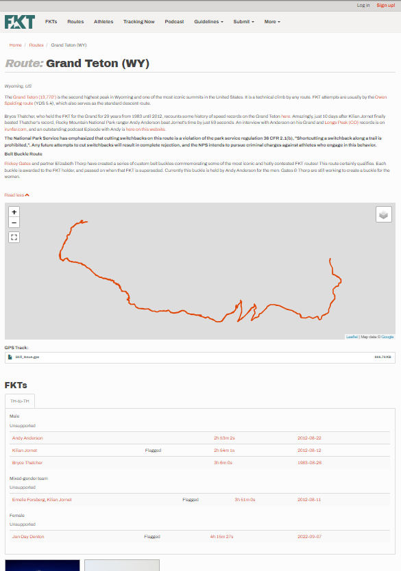 - Asked the FKT site to add language to the Grand Teton route