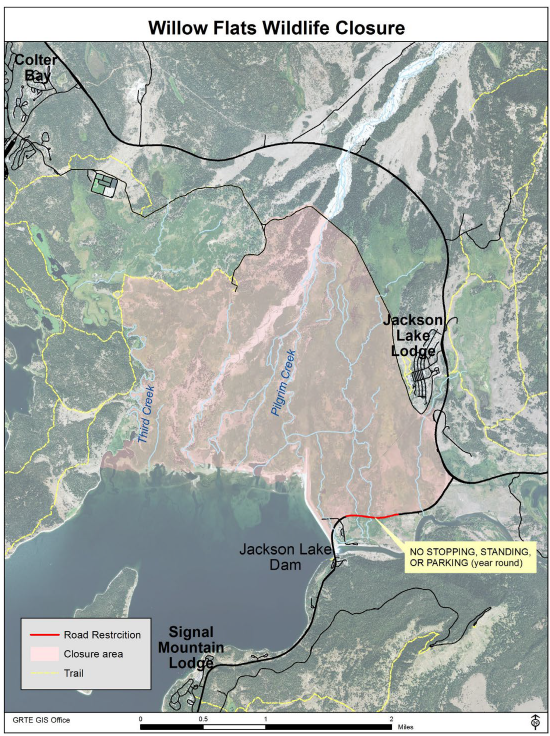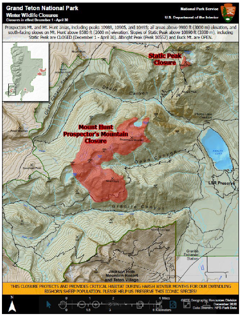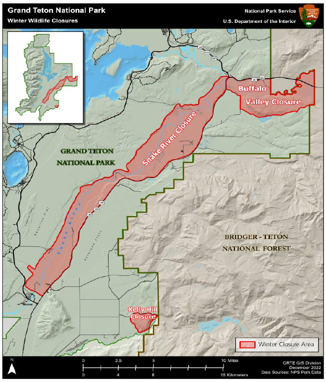 The NPS may close areas, but must follow specific legal steps to do so. See 36 CFR 2.1(b) (preservation of resources), 36 CFR 1.5 (public closures) and 36 CFR 1.7 (public notice requirements). Notice requirements include some combination of conspicuous signs, maps, newspapers or electronic media. GTNP also must compile and make publicly available all designations, closures, permit requirements and other restrictions in an annual Compendium (not available at the link as of this article; see Laws & Policies instead).